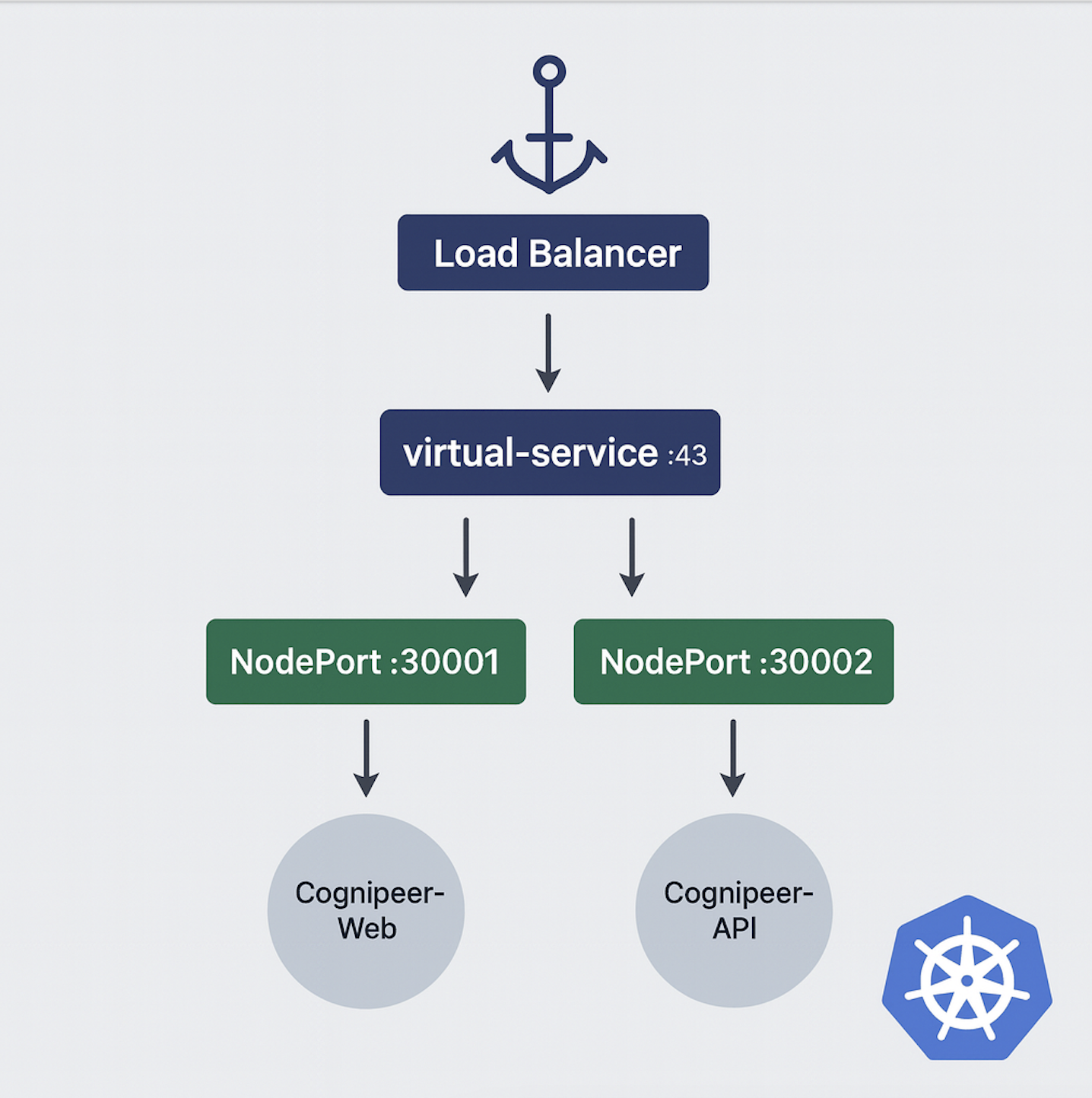 The helm charts of cognipeer-web, which is the interface application, and cognipeer-api application required for API access can be accessed in the Kubernetes environment through two different methods. These methods are as follows;